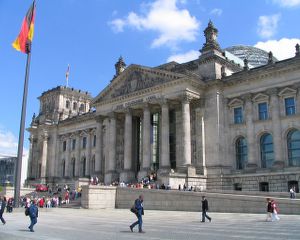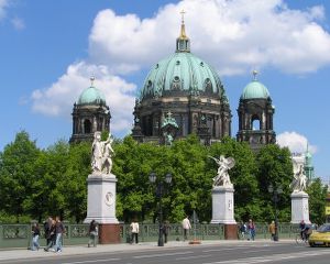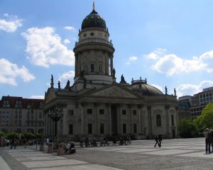 Van de Brandenburger Tor lopen we naar de Rijksdag. Dit is een gebouw met een hele mooie glazen koepel, maar er staan rijen mensen te wachten om naar binnen te gaan, dus dit slaan we maar over. In de verte zien we de Fernseheturm, de televisietoren en besluiten daar naar toe te lopen. Vlakbij de Rijksdag ligt een lijn, waar vroeger de muur heeft gestaan. We passeren de lijn en lopen vervolgens Oost-Berlijn in. We komen over de boulevard Unter den Linden en passeren hotel Adlon, de Staatsbibliotheek, de universiteit en de Staatsopera Unter den Linden. Vervolgens lopen we over het water, de rivier de Spree en komen bij de Berliner Dom. Op Yorin Travel heb ik gezien dat het heel gezellig is bij de Hckische Hfe. Dit ligt vlakbij en langs de Berliner Dom belanden we op de Hckische Markt. Dit is een heel gezellig plein met allemaal cafeetjes en terrasjes. Hier gaan we lekker even in het zonnetje zitten en drinken iets.