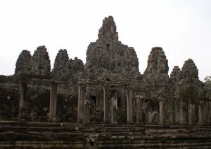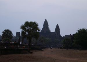 Het is erg druk bij Angkor Wat. Iedereen zit te wachten totdat ze de zon op zien komen, maar helaas, het is te bewolkt en er valt niets te zien, erg jammer!