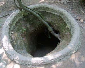 Als we uitgecheckt zijn gaan we naar de Cu Chi tunnels. Deze liggen op ongeveer een uurtje rijden van Ho Chi Minh. We krijgen als eerste een uitleg over het tunnelstelsel als we daar aankomen en we krijgen ook een film te zien. Daarna gaan we het bos in en zien we de vele ingangen liggen. Mama gaat in een ingang ‘hangen’. Ze is de enige die er in past. Ook zien we een tunnelkamer waar ze van het materiaal van de bommen allerlei vallen maakten voor de Amerikaanse soldaten. Als ze bijv. op zo’n val trapten, ging er een luik open en kregen ze allerlei ijzeren pinnen in hun lijf. We zien ook de keuken, eetkamer, ziekenzaal etc. Pa, ma en Erik gaan nog een stuk tunnel in. Deze is wel aangepast voor de toeristen, maar nog steeds erg smal en donker. Ze gaan er dan ook niet ver in. Op de tunnels groeien bomen die men gebruikte voor het eten. Men at de wortels en vruchten van de verschillende bomen.