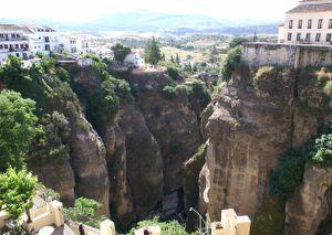s Ochtends lopen we wat rond in Ronda. Dit is een lieflijk stadje van Keltische oorsprong, gelegen op meer dan zevenhonderd meter hoogte boven een indrukwekkend ravijn dat de stad in tween deelt. Verscheidene toegangspoorten verkeren nog in goede staat, zoals die van Almocabar, de poort van Los Molinos die toegang verschaft tot het Arabische stadsgedeelte en de poort van Karel V. In de wijk van San Francisco is een karakteristiek Andalusisch stadsplan bewaard gebleven en in het lager geleden deel van de stad bevinden zich de Arabische baden met een nog vrijwel intacte structuur. De stad beschikt over een indrukwekkend erfgoed van meer dan zeventig adellijke huizen waaronder vooral het paleis van Salvatierra en de huizen van El Gigante, Mondragon en El Rey Moro een bijzondere vermelding waard zijn. Noemenswaardige kerkelijke monumenten zijn de kerk van Santa Maria la Mayor, het klooster van Santo Domingo en de minaret van San Sebastian alsmede de arena uit de tijd van Filips II.